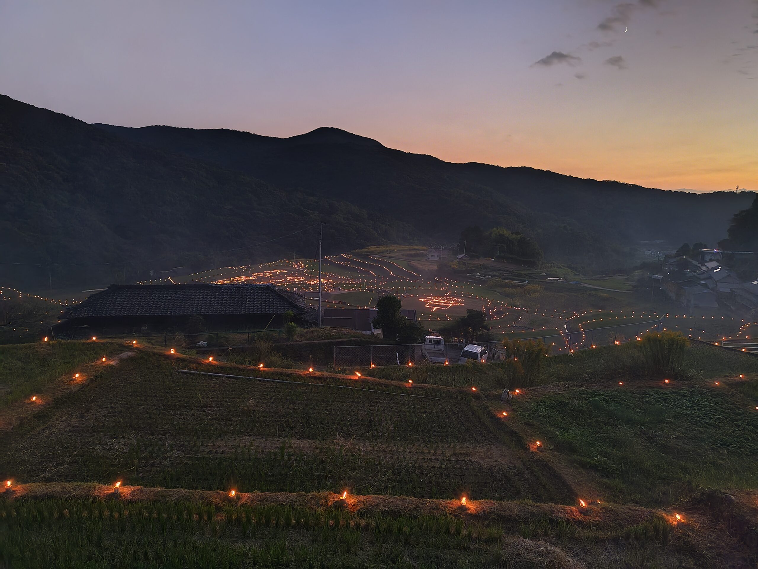 ちょうど棚田に火が灯されました!暗くなるのが楽しみですね♪